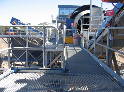 化工廠操作平臺 化工廠原料儲存會揮發一些腐蝕性氣體,傳統的金屬平臺一則會生銹、腐蝕,需要定期保養和維護;二則,在施工的過程中會有電火花出現,容易產生安全隱患。玻璃鋼格柵以及樓梯解決了這些問題,輕便且免維護,施工簡便,造型美觀,贏得了客